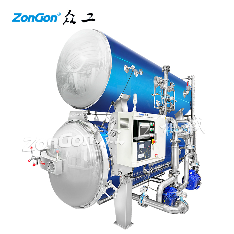 首先,殺菌鍋的底部會注入蒸汽,并與鍋內(nèi)的工藝水混合,通過加熱來升高鍋內(nèi)的溫度。這個過程中,蒸汽的加熱能力使得鍋內(nèi)的溫度能夠達到高溫狀態(tài),以滿足殺菌的要求。
