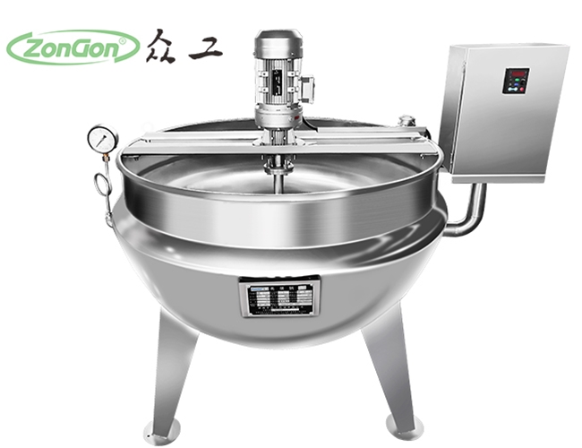 2. 可傾式:通過手輪或液壓裝置傾斜鍋體(≤90°),便于出料。