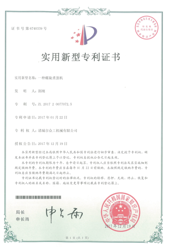 鵪鶉蛋蒸煮剝殼流水線。已申請(qǐng),號(hào):ZL 2017 20077072.5