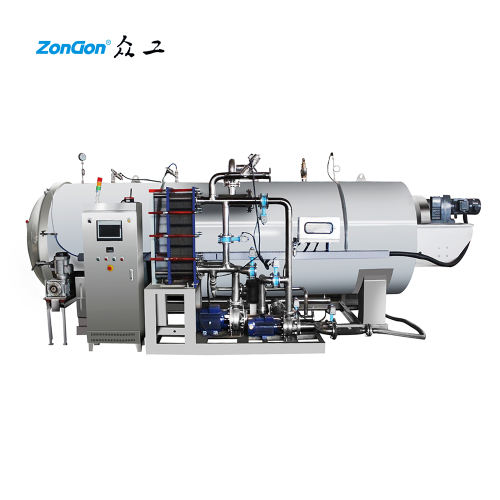 為縮短熱水流程,有些采用側(cè)噴方式使用罐頭受熱更為均勻,尤其適用于袋裝食品的殺菌。